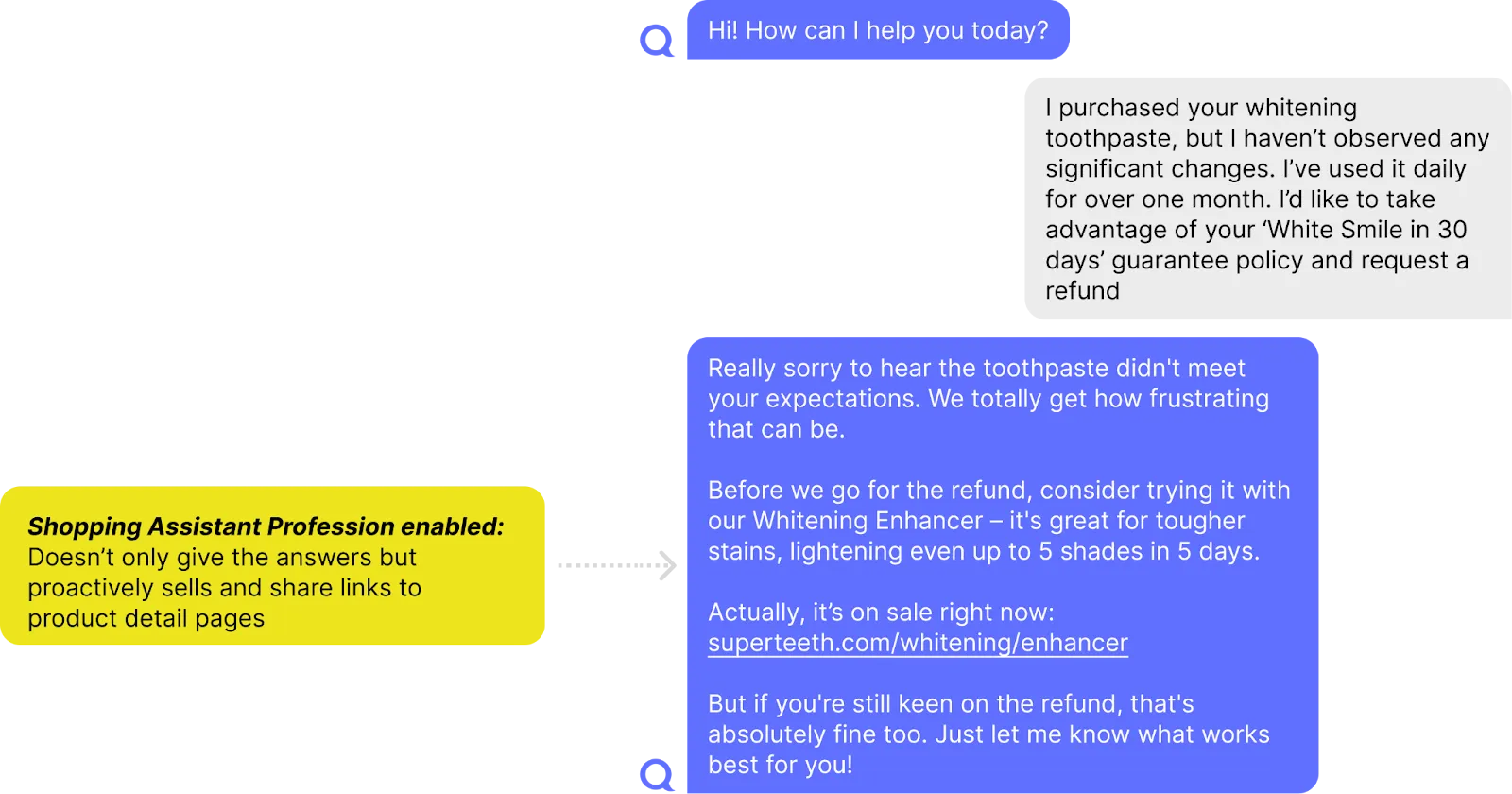 - Integrating an AI chatbot into a website to proactively recommend products based on individual customer preferences and send direct links to relevant product detail pages.