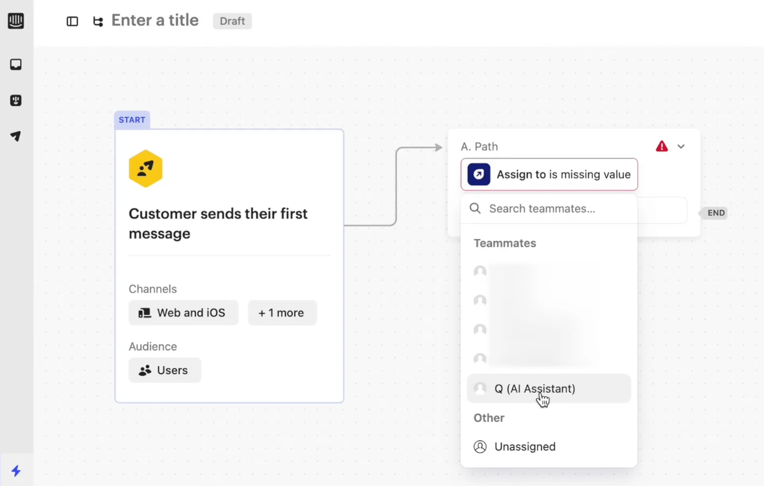 - Create a Workflow that assigns every new conversation to the AI Agent