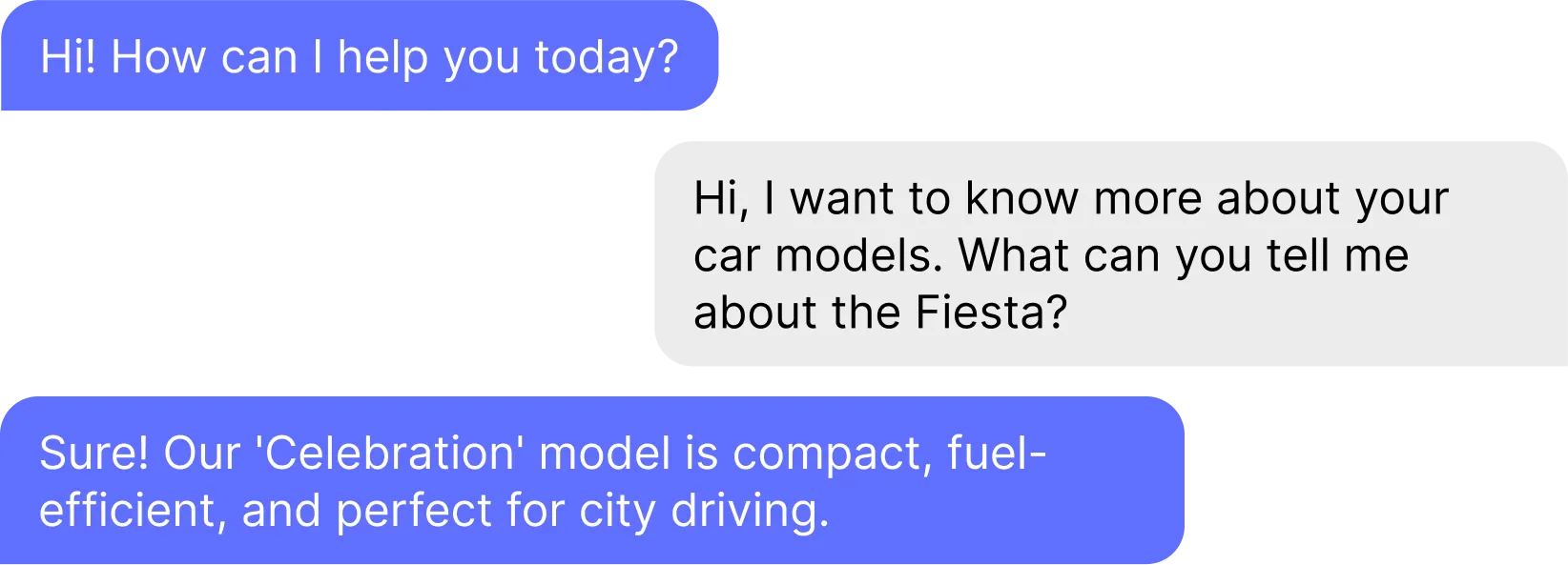 With Custom Translations, the AI Agent correctly refers to the car model as ‘Fiesta’, maintaining the brand’s consistency and avoiding confusion